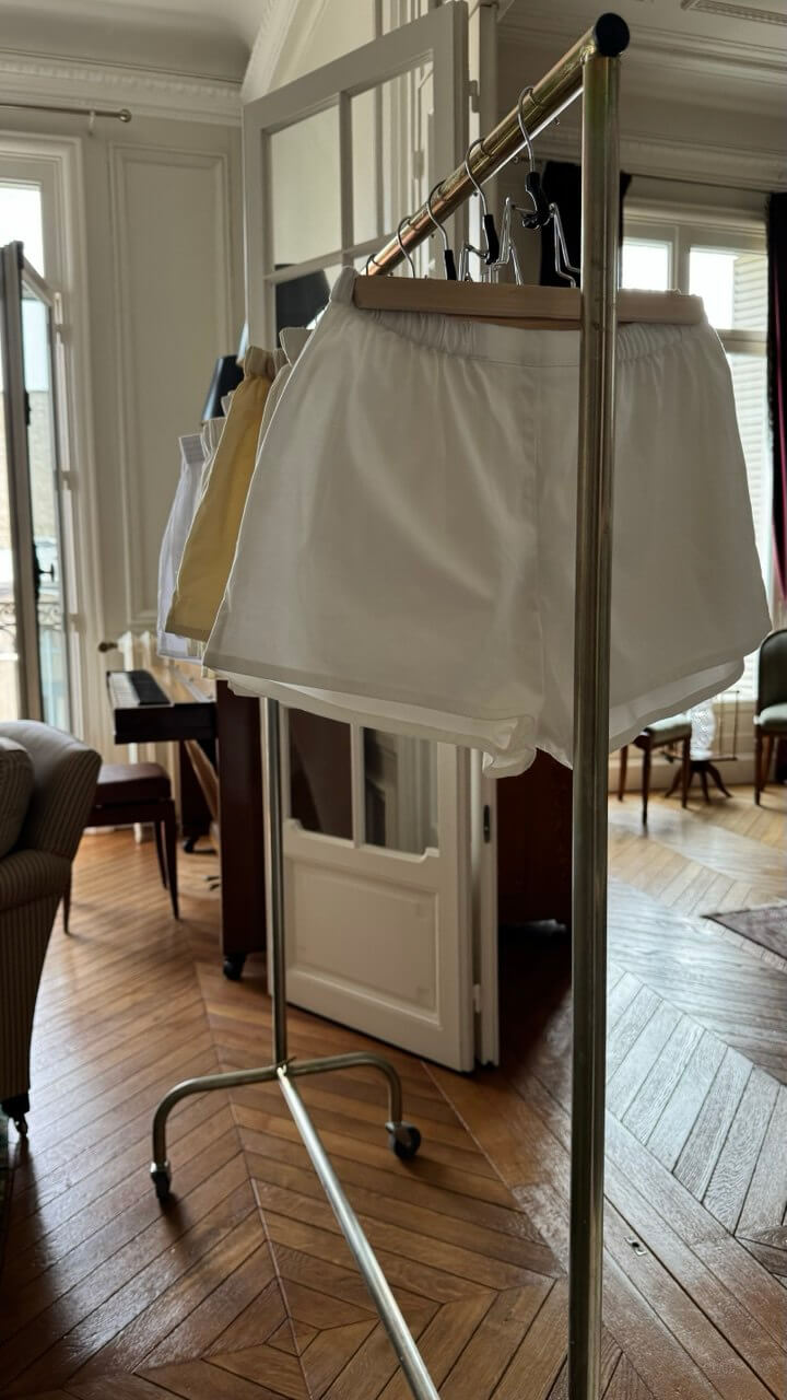 Made in Paris, our line is born out of a deep need for comfort, quality, and authenticity. We use only natural fabrics—cotton, silk— sourced from local markets, crafting every piece by hand with care and precision.
